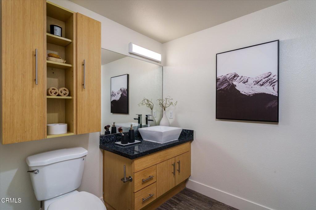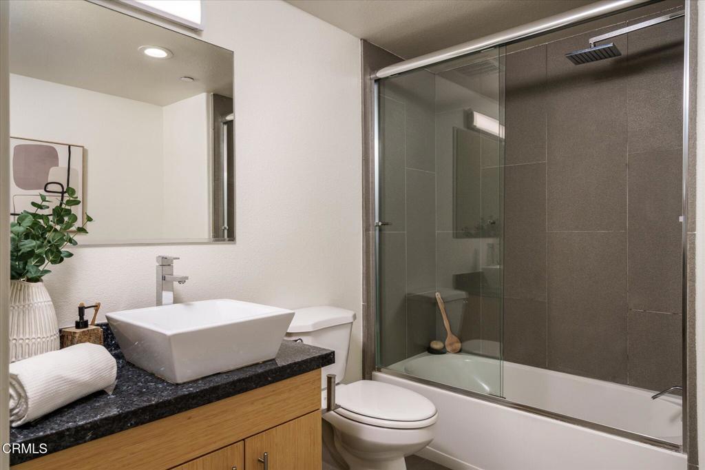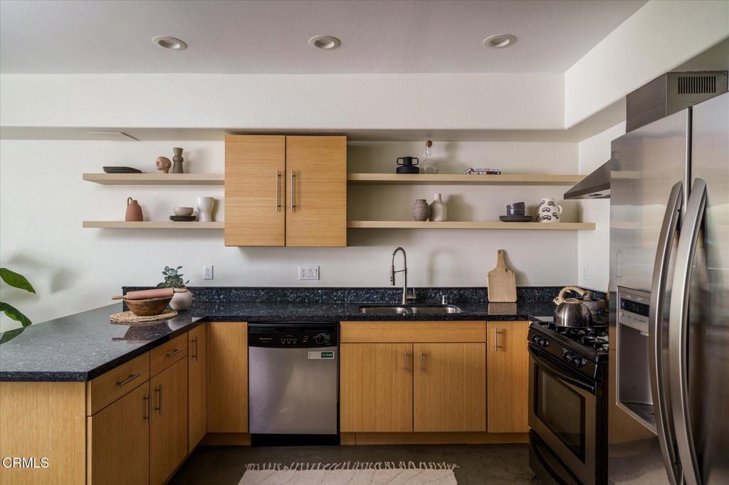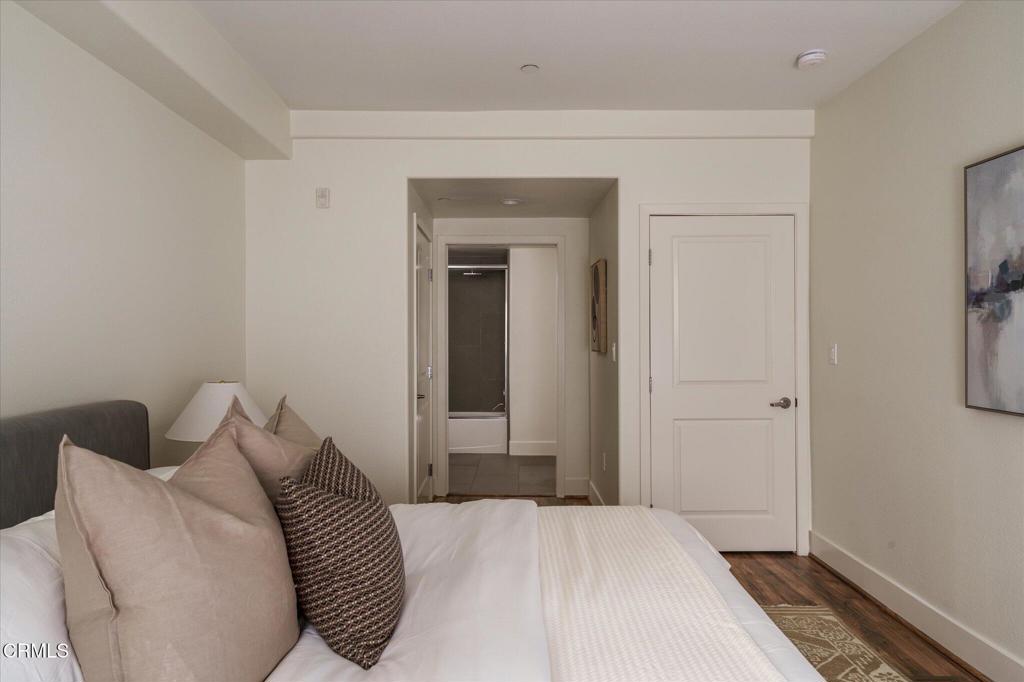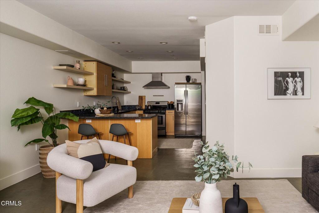 Welcome to this modern three-bedroom, three-bathroom corner unit condo nestled on a quiet tree-lined street near the heart of the vibrant NoHo Arts District. As you enter into the unit, you are welcomed with a spacious open floor plan with polished concrete floors, recessed lighting and dual pane windows. The updated kitchen features granite countertops, custom cabinetry, and open concept shelving. On the upper level, the primary bedroom boasts an en-suite bathroom with a custom vanity and a glass-enclosed shower. The two additional bedrooms are generous in size with an updated bathroom that is perfectly positioned in the hallway between both bedrooms. This condo offers an in-unit laundry area, Ecobee smart home thermostat, new water heater, ample storage space plus two tandem parking spaces in a gated subterranean parking garage. This complex is a secure building with a gym, community lounge and low HOA dues. Located within minutes from all the trendy restaurants, shops and theaters that the Arts District has to offer.